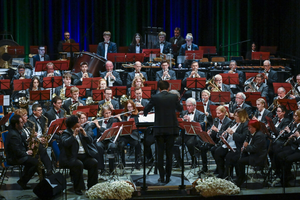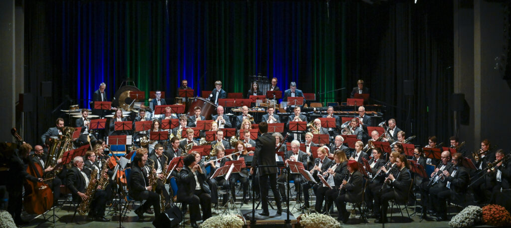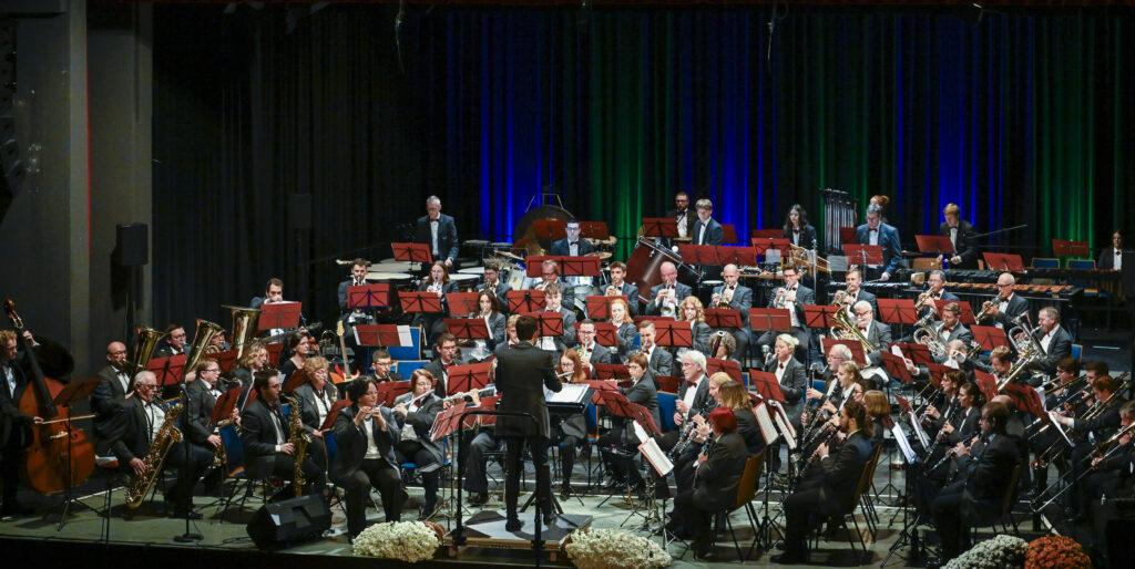 Bereits beim Betreten des geschmückten Parktheaters verspürten die Besucher eine besondere Atmosphäre. Der Saal war gut gefüllt, und das Publikum freute sich auf einen abwechslungsreichen Konzertabend voller musikalischer Höhepunkte. Pünktlich um 19:30 Uhr eröffnete Dirigent Nicholas Reed das Programm, das die gesamte Bandbreite sinfonischer Blasmusik präsentierte – von feierlich-klassischen Klängen bis hin zu modernen Filmmusikarrangements.